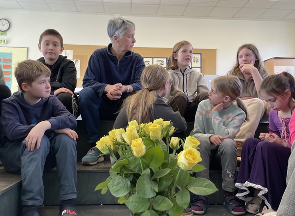 Zum Abschluss des Tages bekamen die Kinder der Lilli-Jahn-Schule noch eine gelbe Rose geschenkt, denn dies war die Lieblingsblume der 1944 deportierten und ermordeten Ärztin aus Immenhausen.